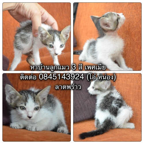 แมวสามตัวหาบ้านใหม่เนื่องจากเพื่อนบ้านไม่ชอบแมวเอาหินเขวี้ยงใส่เวลาแมวเข้าไปบ้านเค้า คุณป้าที่เลี้ยงแมวจึงขอให้ช่วยหาบ้านให้เพราะกลัวว่าวันนึงอาจโดนยาเบื่อ 1. เพศเมียสีขาวตาสีฟ้าทำหมัน ทำวัคซีนแล้ว 2.
