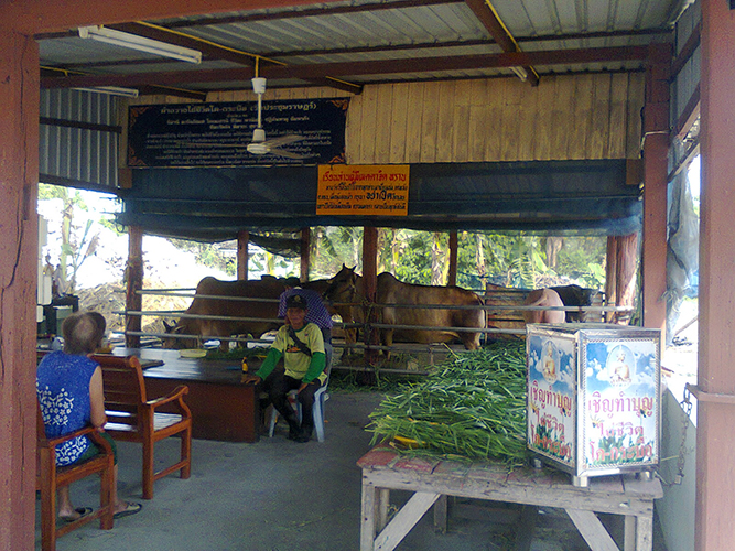 ก็หลังจากที่โดนกระบะตัดหน้าแล้วผมซัดเข้าเต็มๆ ทำให้ล้อหน้าคดนิดๆ ขาจานเป็นรอย(มากๆ)เพราะโซ่หลุดจากสับจานไปขัด และที่สำคัญผมเพิ่งสังเกตเห็นว่ามือเกียร์เบี้ยวนิดๆ แล้วคู่กรณีให้เงินค่าซ่อมรถผม 300 บาท!!!!! ผมก็พยายามหาร้านที่ขึ้นล้อหน้า เปลี่ยนขาจาน มือเกียร์ (SORA) ในราคา 300 บาท แต่ก็หาไม่ได้เลยยยย (ในโลกนี้ก็ไม่มี) ผมหมั่นใส้ในการกระทำของเขาวันนั้นมากๆ จึงไม่อยากจะเก็บเงินไว้เลย จึงตัดสินใจเช้ามาอีกวันเป็นวันมาฆบูชา นำเงินไปไถ่ชีวิตโค กับทำบุญถวายวัดซะเลย และซื้อขนมเลี้ยงเพื่อนให้หมด บอกตรงๆว่าสบายใจกว่าเก็บเงิน 300 บาทไว้เยอะเลยครับ