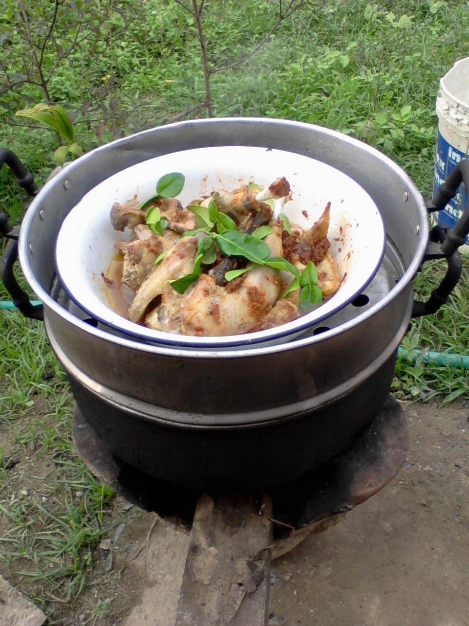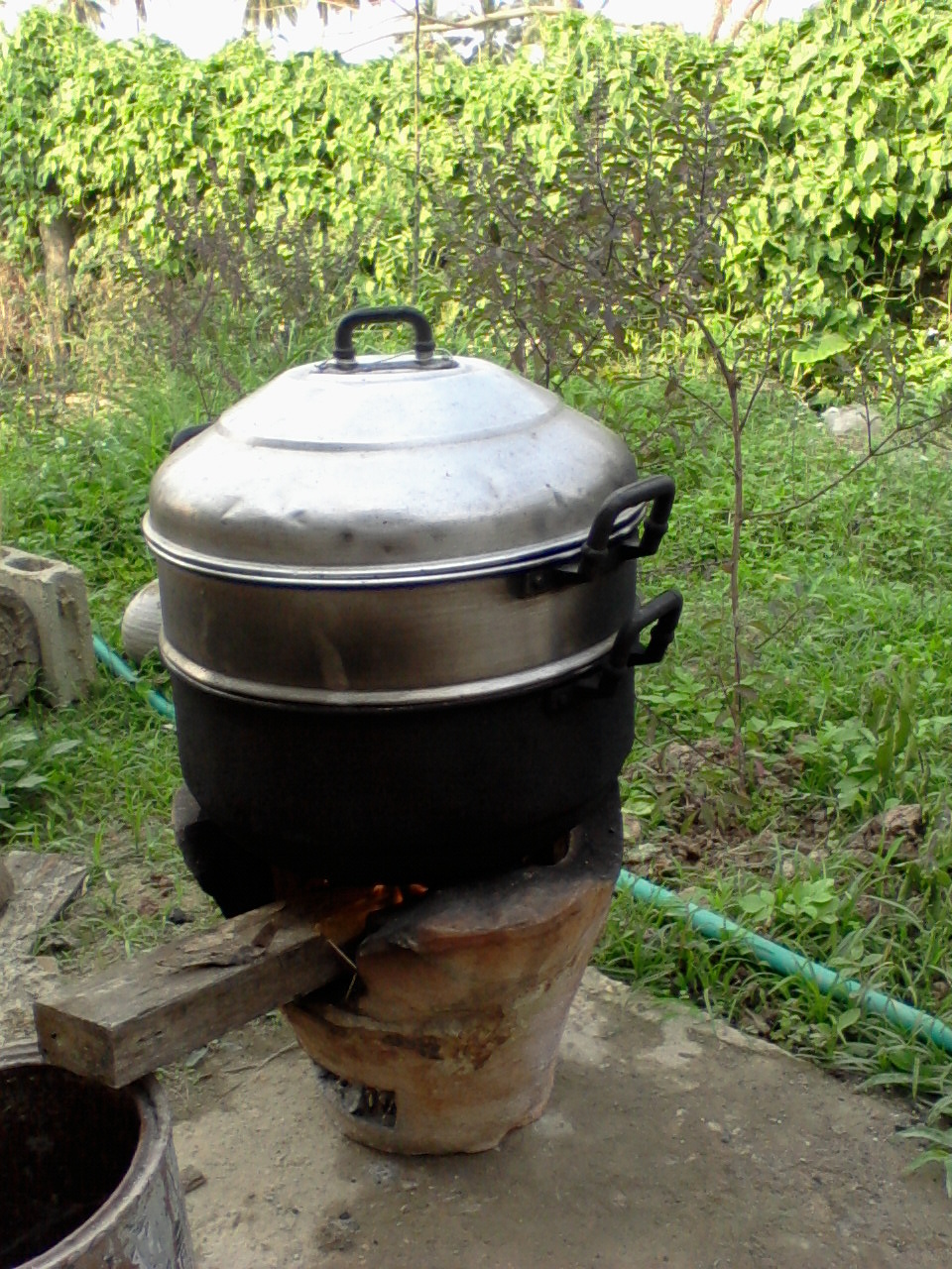 นึ่งแบบใช้ฝืนก้นหม้อจะดำแบบนี้แหละ
