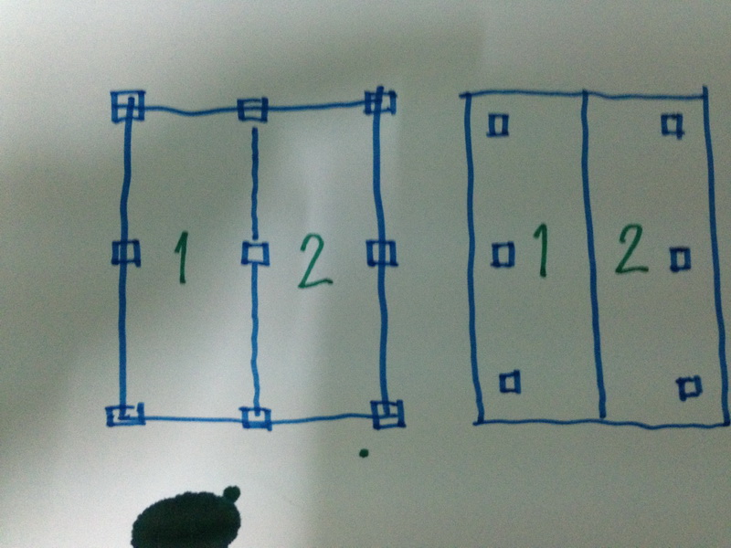 อาคารเป็นตึกแถวนะครับ หน้ากว่าง 4 เมตร และลึก 16 เมตร โดยมีเสาแบ่งทุกๆ 4 เมตรครับ เดิมเป็นตึกแถว 2 คูหา ทีนี้ต้องการแบ่งกลางระหว่าง 2 คูหาครับ แบ่งแค่ 1 ชั้นนะครับ ไม่ใช่ทุกชั้น โดยวัสดุอยากได้เป็น 2