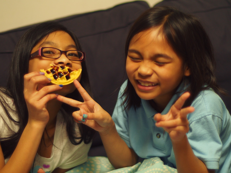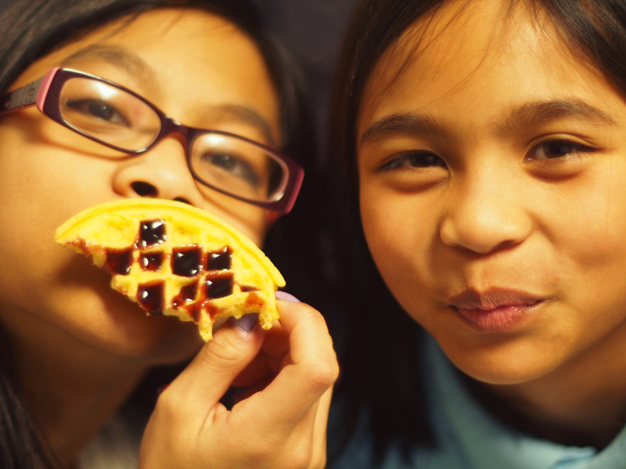 ไม่ได้ไปไหนไกล ถ่ายรูปเด็ก ๆ ตอนกินข้าวในบ้าน เปิดไฟแสงจากนีออนแต่ตั้งค่า WB ผิดไปเลยออกมาซะเหลืองอ๋อยเลย
