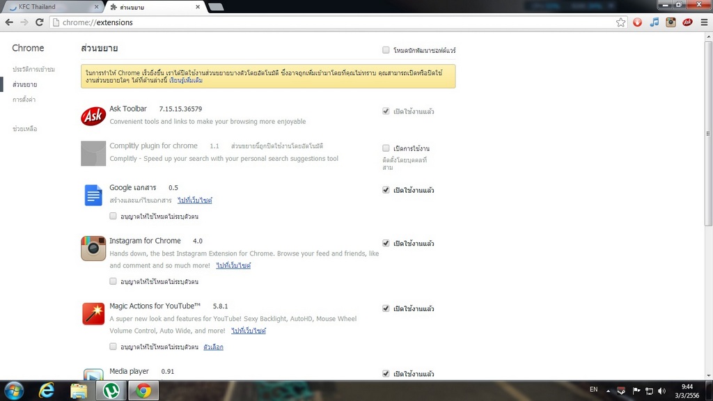 จำไม่ได้ว่าเผลอไปติดตั้งตอนไหน ทำอย่างไรก็เอาออกไม่ได้ uninstall จะเครื่องก็ทำแล้วแต่ใน chrome มันไม่ยอมให้เอาออกเลยแถมเป็นแถบสีเทาทำอะไรก็ไม่ได้ ในมีวิธีแก้ขั้นสูงบอกหน่อยครับ ตอนนี้รำคราญมันมาก