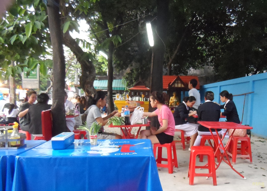 ผ่านแยกอรุณอัมรินทร์(ศิริราช) มุ่งไปวัดอรุณฯ แลไปทางซ้ายเป็นเด็ก ๆ สาวนักเรียน ม. ปลายนั่งกินอาหารอย่างเอร็ดอร่อย