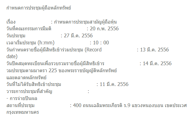 หรือต้องรอประชุมผู้ถือหุ้น 27 มีค. 56 ก่อน