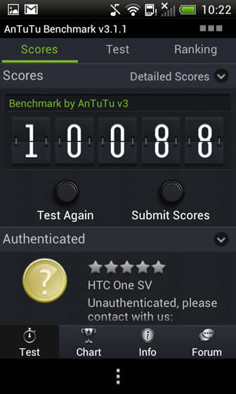 One SV ใช้ชิป Snapdragon S4 Plus ครับ (MSM8230) ดังนั้นความแรงจึงมากกว่าชิป Dual-Core พอสมควรจากตัวซีพียู Krait 1.2GHz พร้อม Adreno 305 GPU และแรม 1GB ดูได้จากคะแนน Benchmark ซึ่งค่อนข้างสูงทีเดียว ทั้งนี้การใช้งานจริงค่อยว่ากันไปตามแต่ละคนนะ