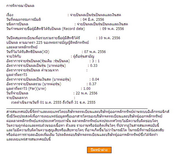 ปันผลเป็นหุ้น 3 ต่อ 1 ครับ