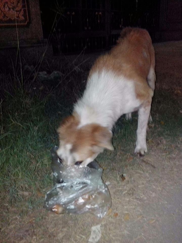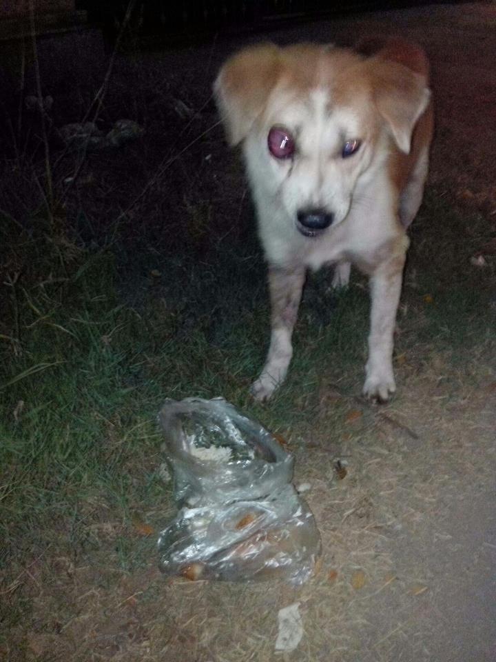 ไปเจอหมาตาปูดมาเมื่อค่ำคะ น่าจะเป็น VG (มะเร็ง) เจอคนที่มาให้ข้าวหมา บอกว่าเห็นเป็นมาเป็นเดือนแล้ว แต่คนให้ข้าวก็ไม่เคยจับคะ โป้งจังเองก็ไม่กล้าจับคะ หมาไม่เคยเจอกัน และโป้งเองก็ไม่กล้าอุ้ม จับหมา เพราะเคยยถูกกัดคะ