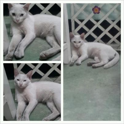 สวัสดีค่ะ พอดีตอนนี้มีแมวหลงมาแถวๆ บ้านตัวนึง อายุประมาณ 3 เดือนได้ค่ะ ตัวผู้ สีขาว นวลๆ ตรงหางสีเหลืองเป็นลายๆ ค่ะ หางยาวชี้สวยมากค่ะ น้องขาว ขี้อ้อนมากๆ ค่ะ คุ้นเคยคนเป็นอย่างดี เราให้อาหารมันทุกวัน