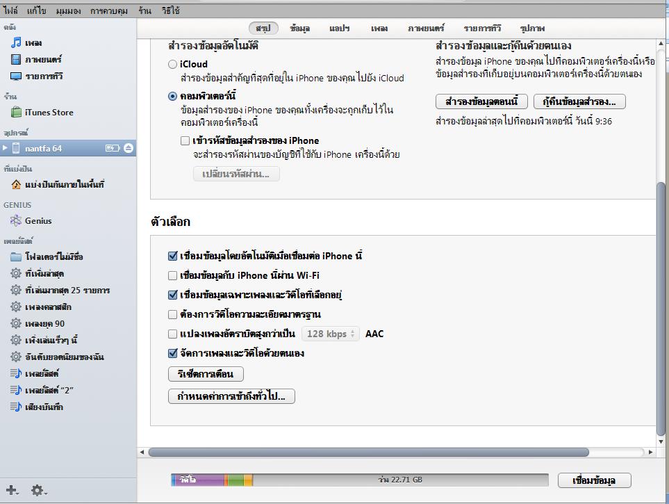 ช่วยดูว่าการเอารูปจากคอมพิวเตอร์ลง iPhone โดยใช้โปรแกรม iTunes ผมทำตรงไหนผิด มีแจ้งว่ารูปทั้งหมดจะถูกลบ