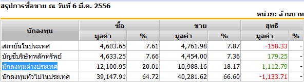 สรุปการซื้อขาย ณ วันที่ 6 มี.ค. 2556