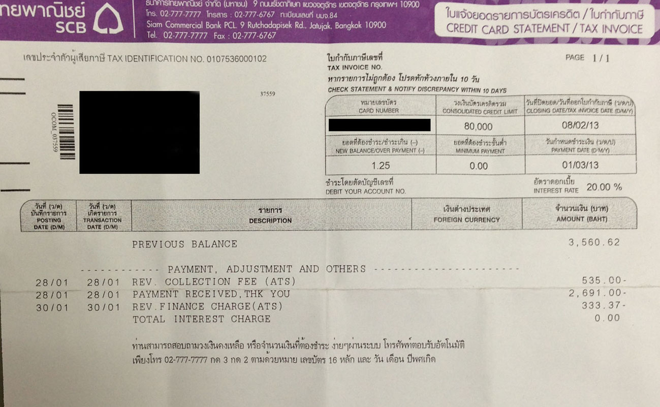 มียอดค้างชำระเข้ามา 1.25 บาท ซึ่งจริงๆ แจ้งปิดบัตรไปหมดแล้ว เพราะไม่พึงพอใจในการบริการของธนาคาร