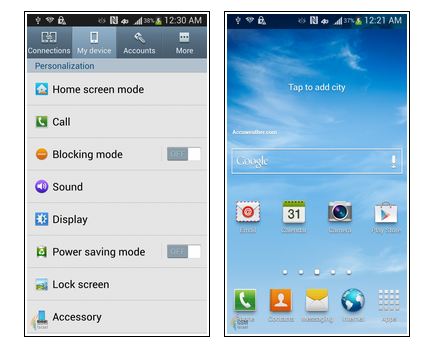 Touchwiz ตัวใหม่ ที่มาพร้อมกับหน้าตาในส่วนของการตั้งค่าตัวเครื่องแบบใหม่ แยกเป็นหมวดหมู่การเชื่อมต่อ, การตั้งค่าในส่วนอุปกรณ์, การตั้งค่าส่วนบัญชี และ More ก็คือการตั้งค่าในส่วนอื่นๆที่เหลือครับ แยกให้ดูง่ายและสบายตากว่าเดิม หน้าโฮมแสดงในรูปแบบ Grid ขนาด 4×4 แต่มีส่วนแสดงตรง Dock ด้านล่างเป็นแบบห้าไอคอน ยังคงใช้หน้าตาไอคอนชุดเดิมของ Touchwiz UX ในตัวก่อนหน้านี้ครับ