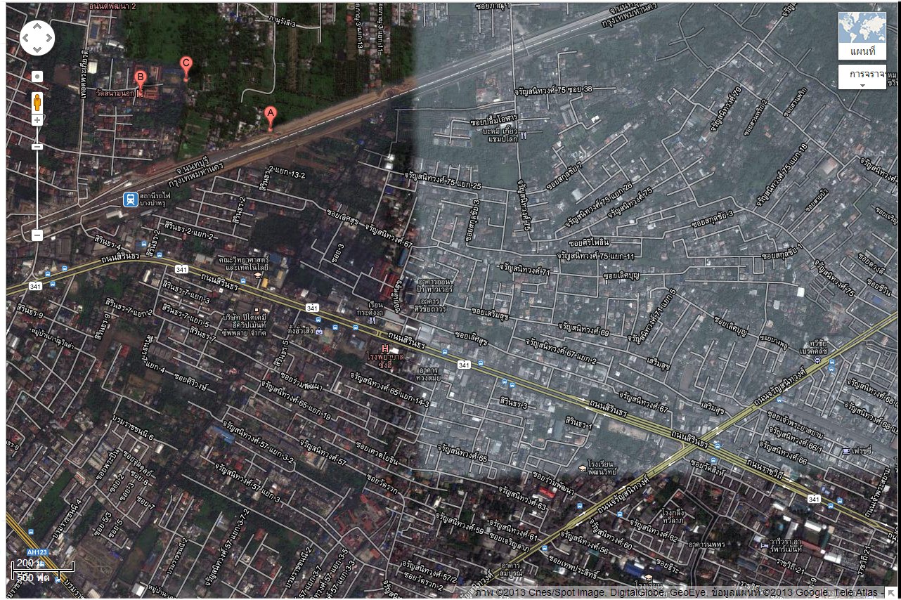 จะไปวัดสนามใน นนทบุรี ไปจากวัชรพลรามอินทรา ทางไหนใกล้ทีุ่สุดครับ จากรูปคือตำแหน่ง A ครับ