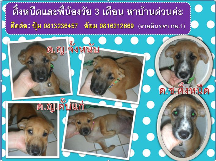 ขอบ้านอันอบอุ่นให้เจ้าติ๋งหนืด จังหนับ และตั๊บแก่ ลูกหมาจรถูกทิ้งจากลาดพร้าว