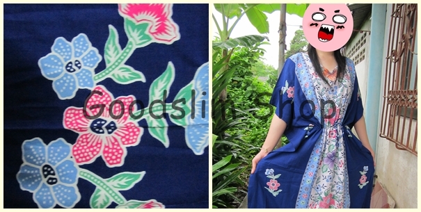 ลาย 002 ชุดเดรสอินโดนีเซีย ลายดอกไม้พื้นขาวสวยสด สีฟ้าน้ำเงิน ตัวนี้จะเป็นปีกค้างคาว