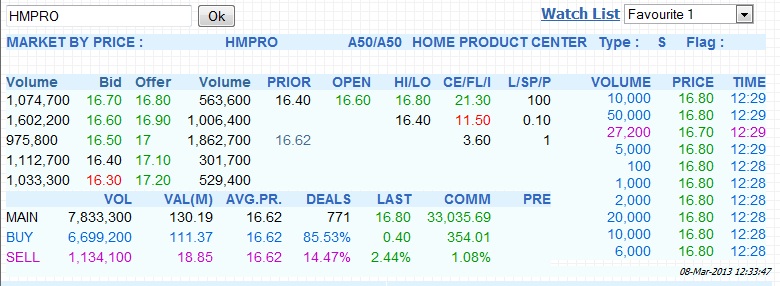 HMPRO วันนี้เริ่มแรงแล้วครับ ไปทำนิวไฮแล้วปิดภาคเช้า 16.80 บาท
