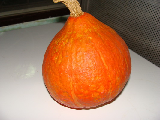 ฟักทองสีแดงส้ม เนื้อในก็สีแดงส้มแต่อ่อนกว่าเปลือกนอก อร่อยเหนียวหนึบ