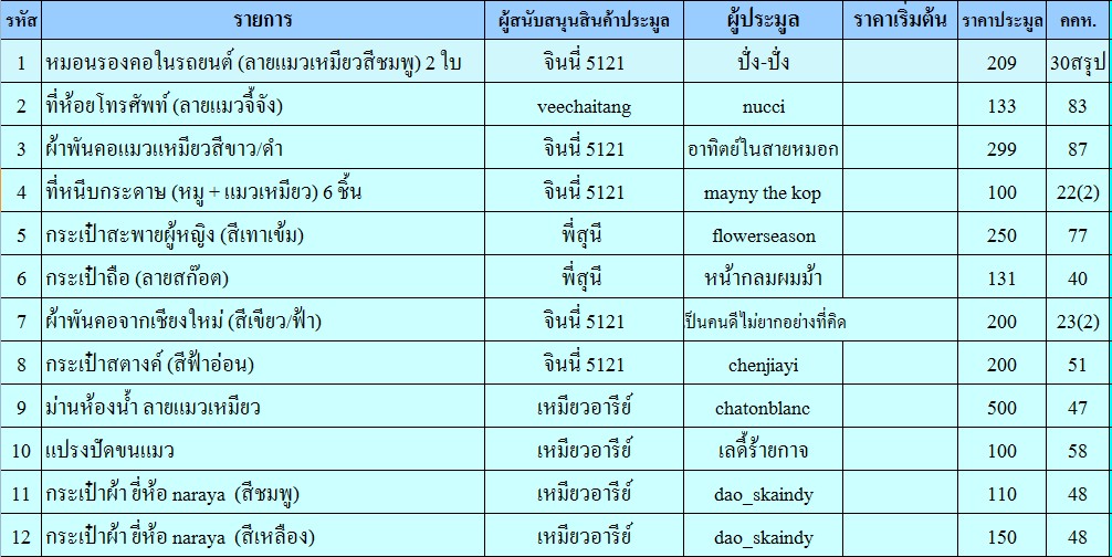 สินค้าประมูลอยู่นี่คร้า (เฉพาะกิจ) โดยผ่านโครงการรักษ์แมว ฯ เคสน้องเตยหอม เคสที่ 56/271
