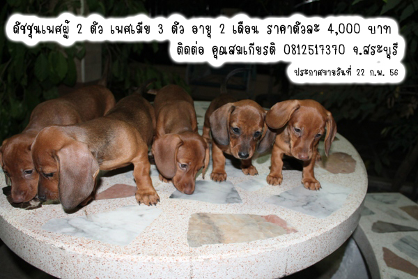 ขายสุนัขพันธุ์ดัชชุนเพศผู้ 2 ตัว เพศเมีย 3 ตัว อายุ 2 เดือน ราคาตัวละ 4000บาท ติดต่อ คุณสมเกียรติ 081-2517370 ได้เลยจ้า น้องหมาอยู่ที่สระบุรีค่ะ