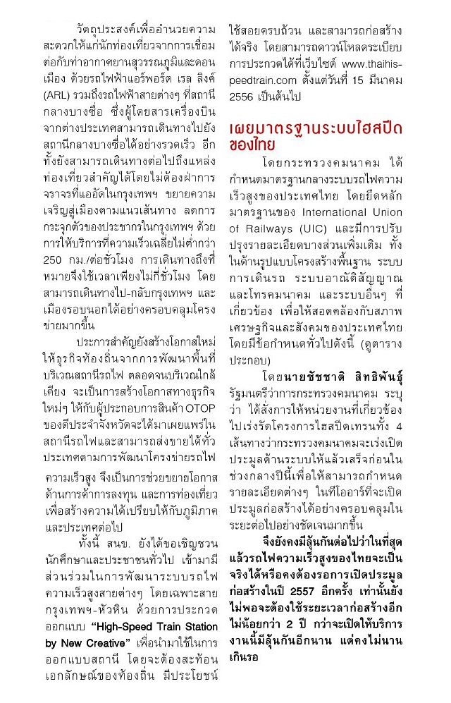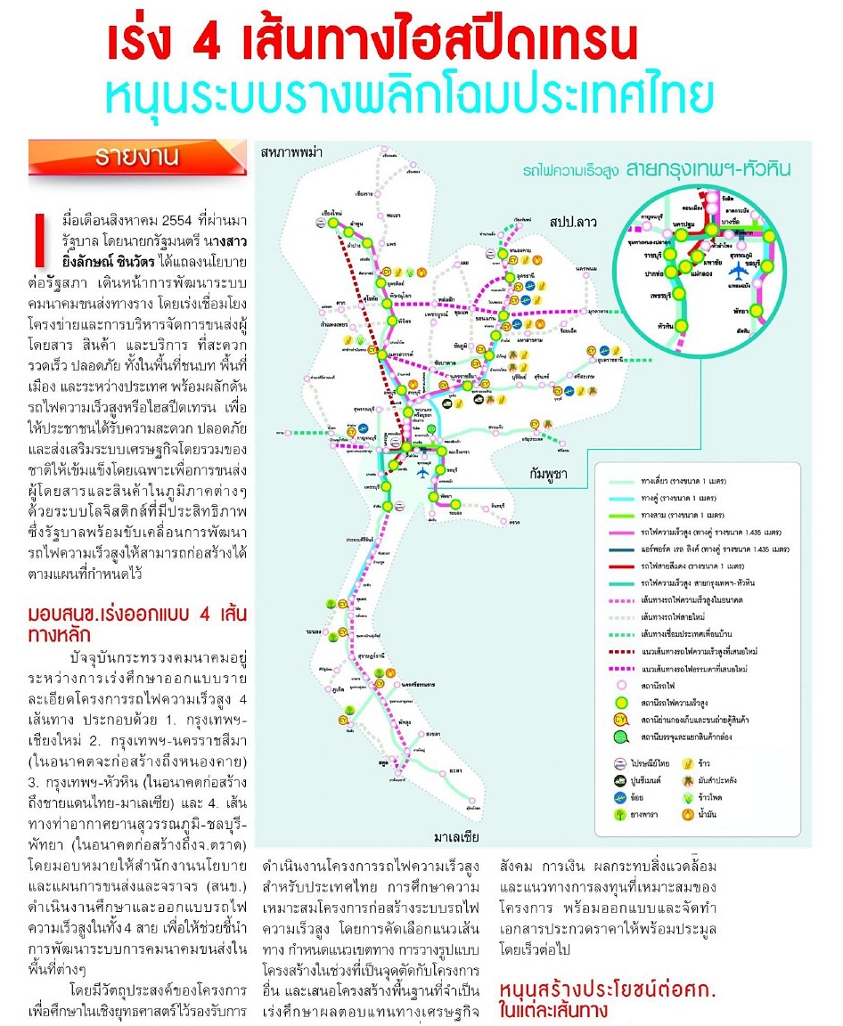 ผุดเมืองใหม่ ไฮสปีดเทรน10ตร.กม. รอบสถานีจุดพลุ'อยุธยา-พิจิตร-เพชรบุรี-ปากช่อง' ครบ4ภูมิภาคทั่วไทย ประชาชาติธุรกิจ ฉบับวันที่ 15 กรกฎาคม พ.ศ. 2556