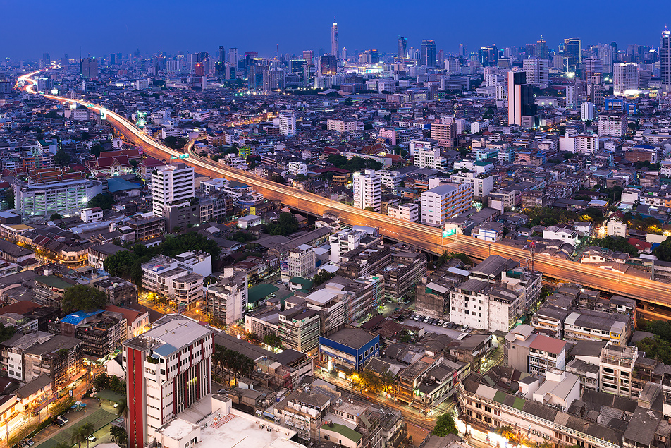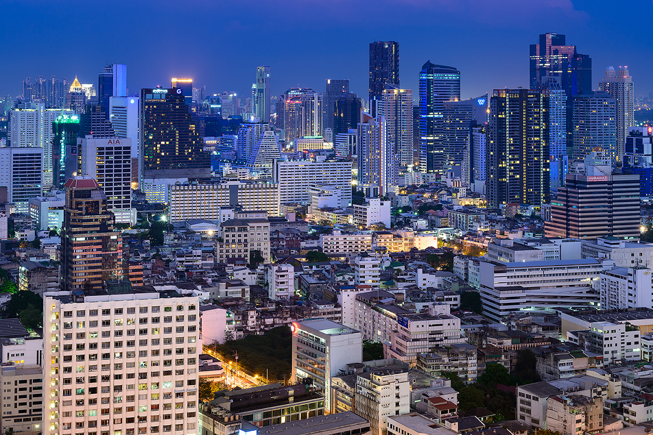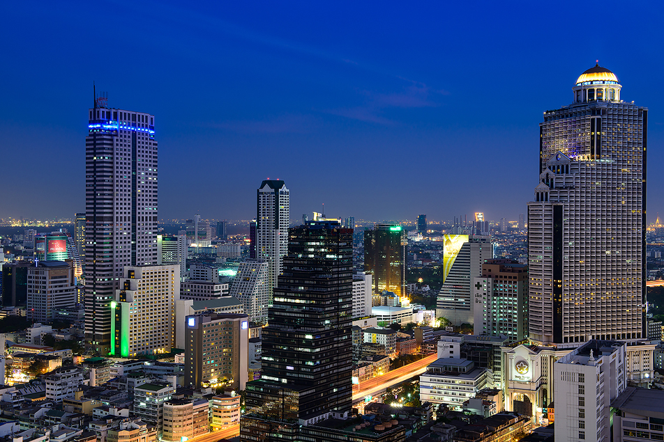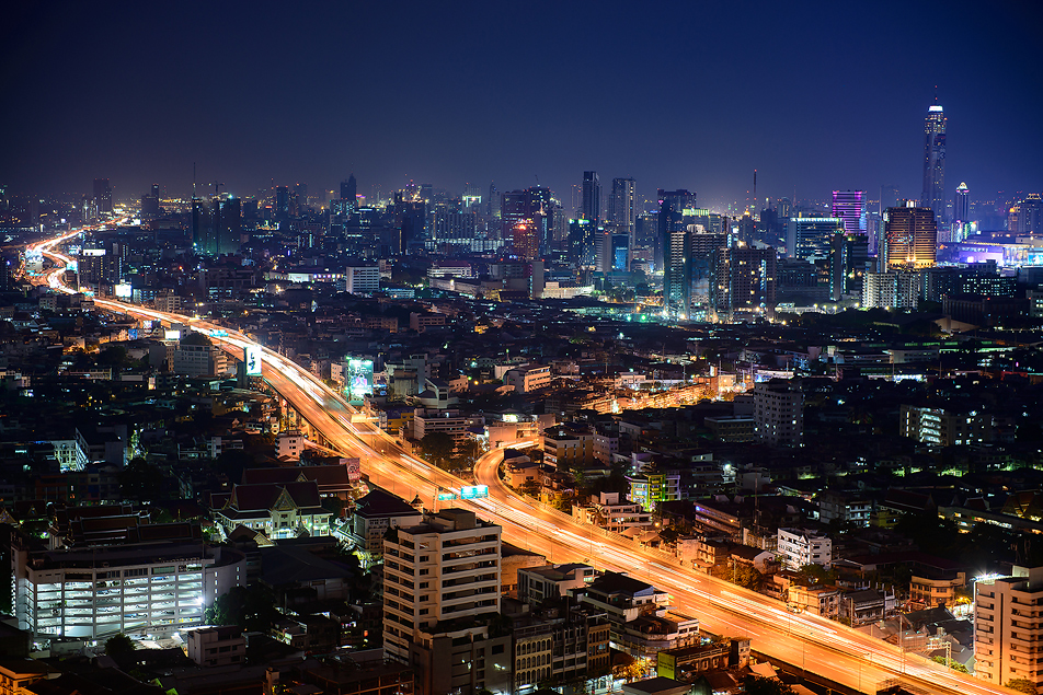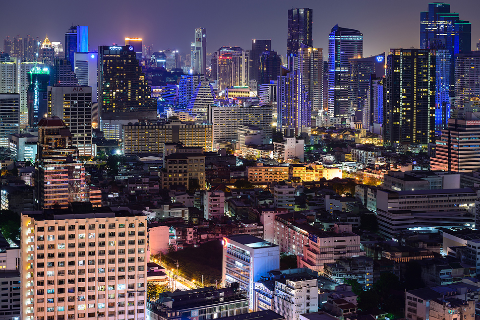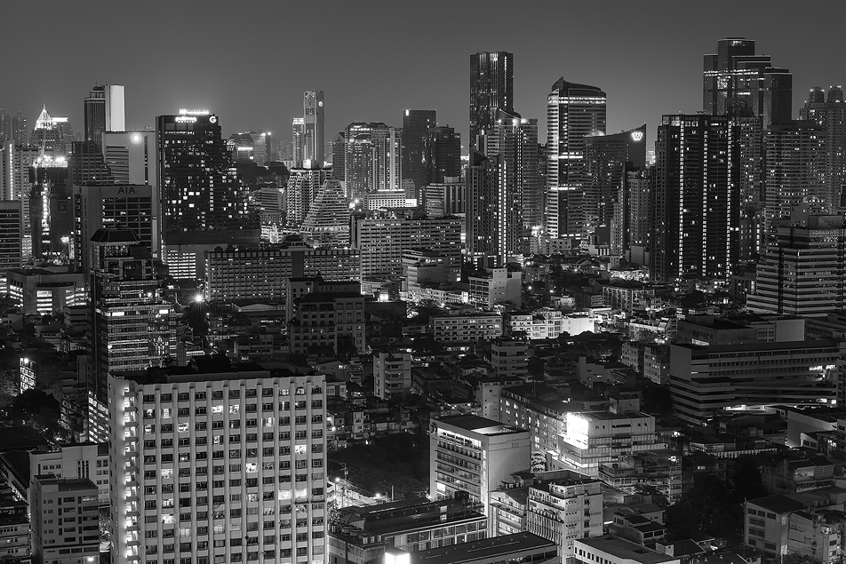 ขอเปิดด้วยรูปนี้ ผมชอบเป็นพิเศษ เพราะมุมนี้ตึกสูงๆค่อนข้างเยอะ และรูปทรงของแต่ละตึกแตกต่างกันชัดเจน มันเลยดูเหมือนเป็นมหานครจริงๆ แต่เพราะถ่ายตอนกลางคืนมุมนี้สีสันมันเยอะมาก ดูแล้วแสบตามากกว่าจะดูสวย ทำเป็นขาวดำแล้วดูชัดกว่าเยอะเลย