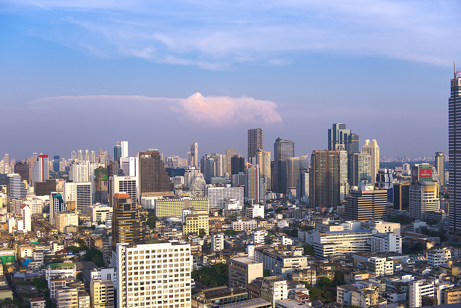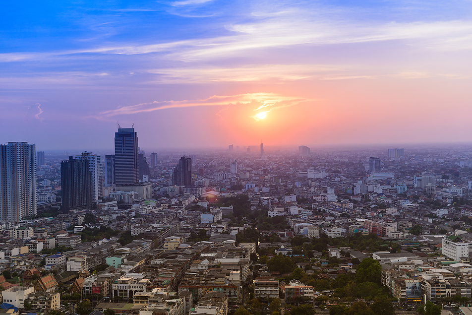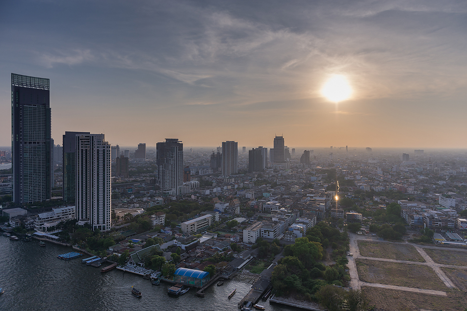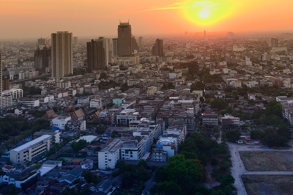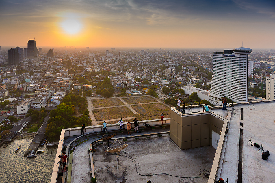 ขึ้นไปบนยอดตึก กสท. ตั้งแต่ห้าโมงเย็นกว่าๆ เริ่มจากทิศตะวันออก หันหลังให้พระอาทิตย์ก่อน