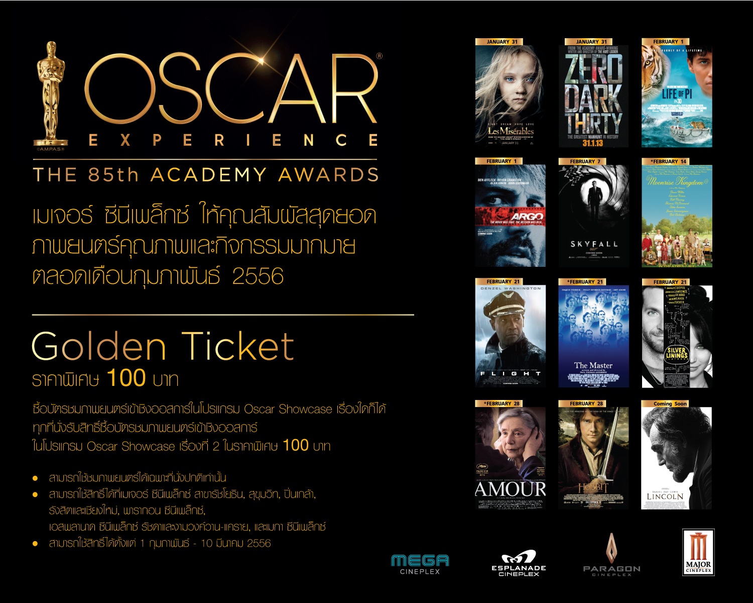 บัตร Golden Ticket ส่วนที่เพิ่มเงิน 100 บาท เพื่อใช้ชมภาพยนตร์เข้าชิงออสการ์ในโปรแกรม Oscar Show Case เรื่องที่ 2