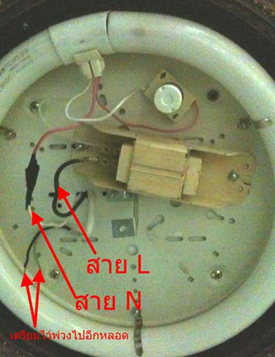 คือจะติดหลอดไฟอีกตำแหน่งโดยใช้สวิตซ์เดียวกับหลอดกลมนี้ ผมเดินสายมาแล้วตามภาพ