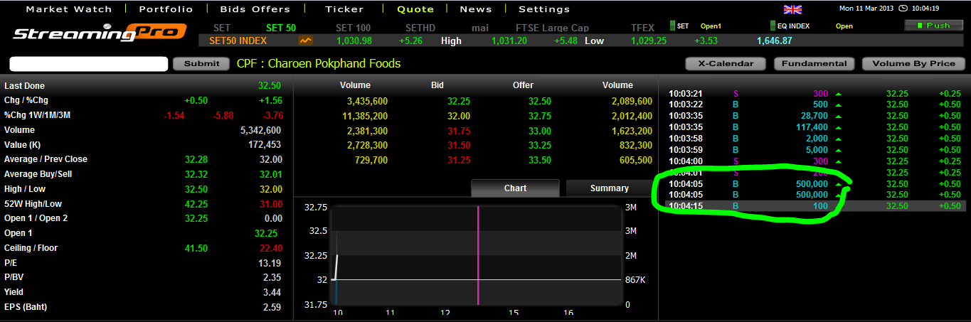 แหมๆๆ โวลลุ่มน้อยเหลือเกิน offer ก็เบาบางมาก จะหลอกให้เม่าช่วยดันหุ้นให้ก่อนตบใหญ่อีก แผนเดิมๆ อ่านง่ายมาก ไม่มีความคิดสร้างสรรค์เลยครับ บอกตามตรงนะครับว่าผมเสียใจและผิดหวังในตัวเจ้า CPF จริงๆ ถ้าไม