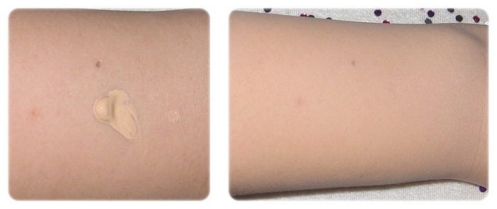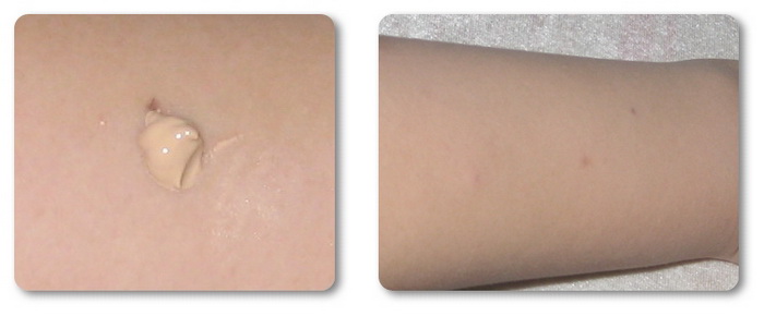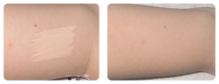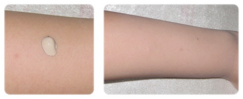 รองพื้นตัวนี้เกลี่ยง่ายค่ะไม่หนักหน้าด้วย ภาพบนที่เตยเทียบแขน 2 ให้ดู อาจจะดูไม่ต่างกันเท่าไหร่เพราะรองพื้นสีนี้สีเดียวกับแขนเตยเลยค่ะ แต่จะสังเกตได้ว่าแขนด้านบนที่ลงรองพื้นตัวนี้จะเนียนกว่า สำหรับเตย เตยชอบรองพื้นตัวนี้ พอทาลงที่หน้าแล้วไม่หนาจนเกินไป ไม่รู้สึกว่าลงรองพื้นแถมเกลี่ยง่ายมาก