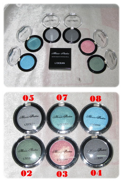 อันนี้เวลาจะใช้บนใบหน้าคงต้องปัดแบบเบามือมาก ไม่งั้นหน้าคงจะวาวเกินไป ผสมผงไขมุก มี 10 เฉดสี ขาว เทา ชมพู ฟ้า ไวน์ ทอง ส้ม ม่วง บรอนซ์และกลิตเตอร์