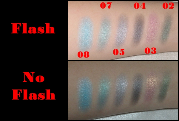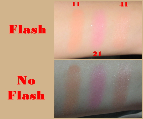 อายแชโดว์ของยี่ห้อนี้จะเป็นชิมเมอร์ค่ะ พอทาออกมาแล้วจะได้สีไม่เข้มมาก จะออกวาวๆมากกว่า โดยส่วนตัวแล้วเราชอบ เตยชอบพวกชิมเมอร์ค่ะ เตยรู้สึกว่ามาเดี่ยวก็สวยแล้ว มาดูSwatch สีกันค่ะ กรี๊ดกับสี 03 Indian Pink มาก ตอนที่ยังไม่ได้ลองทารู้สึกเฉยๆ แต่สีแปลกดี