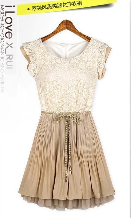 เดรสสวย งานเนี้ยบไม่มีที่ติ ด้านบนเป็นผ้าลูกไม้มีซับใน ด้านล่างเป็นกระโปรงอัดพลีท เหมือนแบบเลยค่ะ