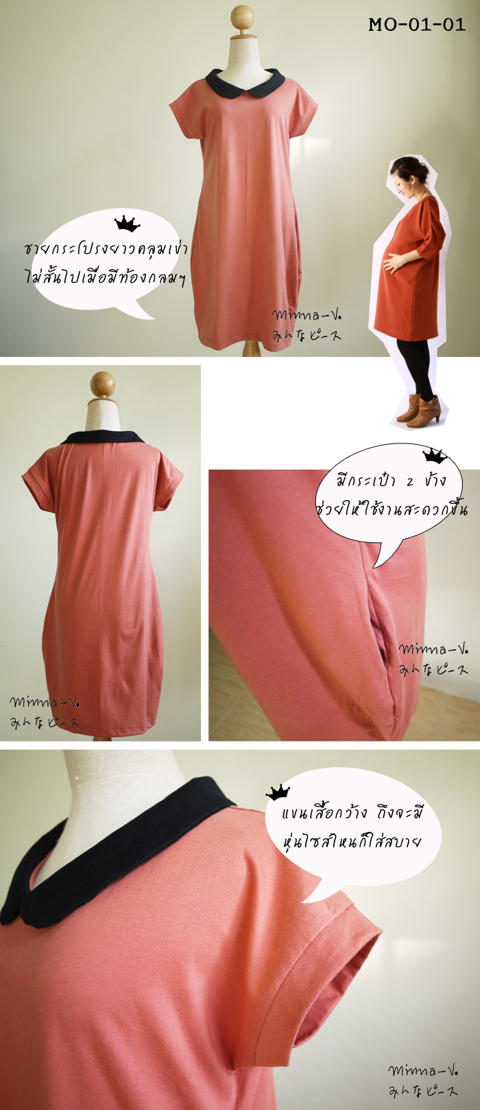 เดรสผ้ายืดคอตตอนเนื้อดี ไม่บาง คอปกบัว ใส่ได้ตั้งแต่ท้องอ่อนๆถึงหลังคลอด ใส่ทำงานสวยเก๋ค่ะ