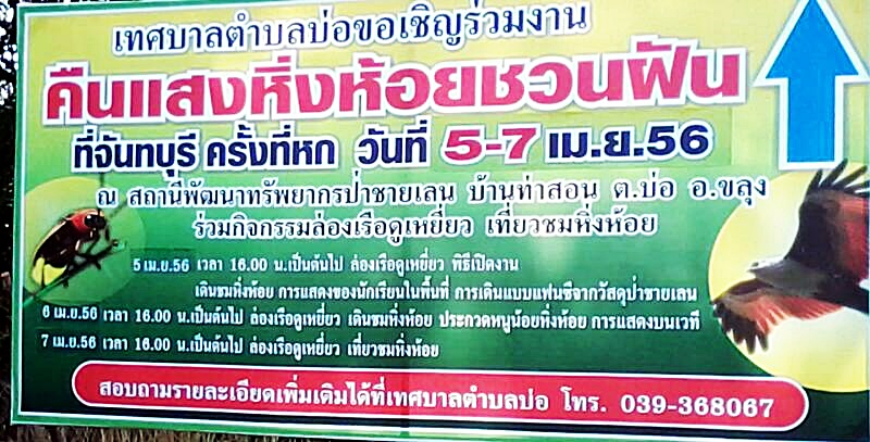 เทศบาลตำบลบ่อขอเชิญร่วมงาน คืนแสงหิ่งห้อยชวนฝันที่จันทบุรี ครั้งที่ 6