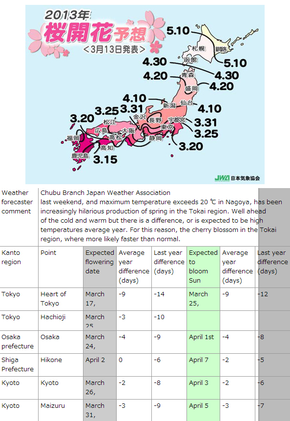 พยากรณ์ซากุระบานปี 2013 โดย japan guide