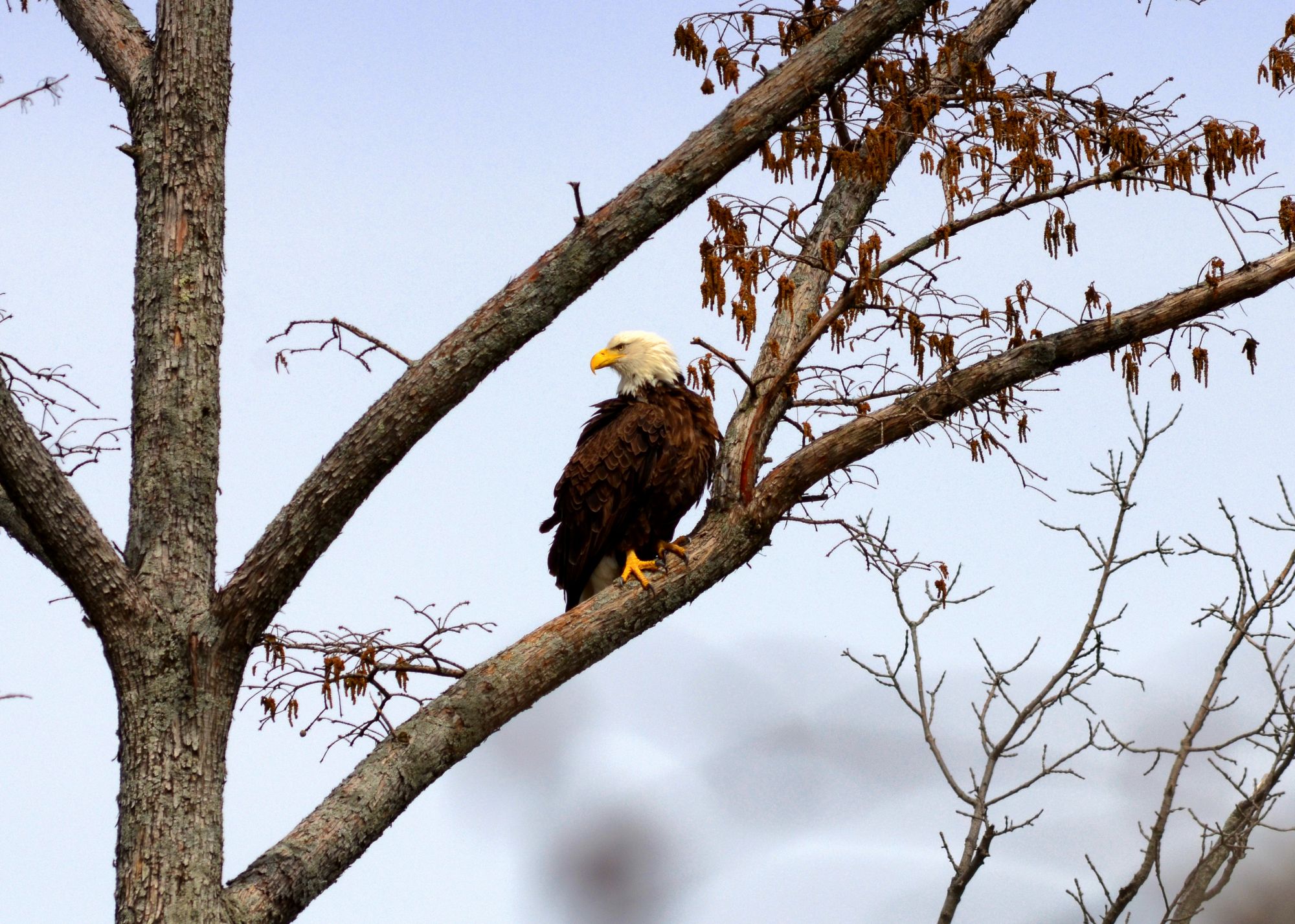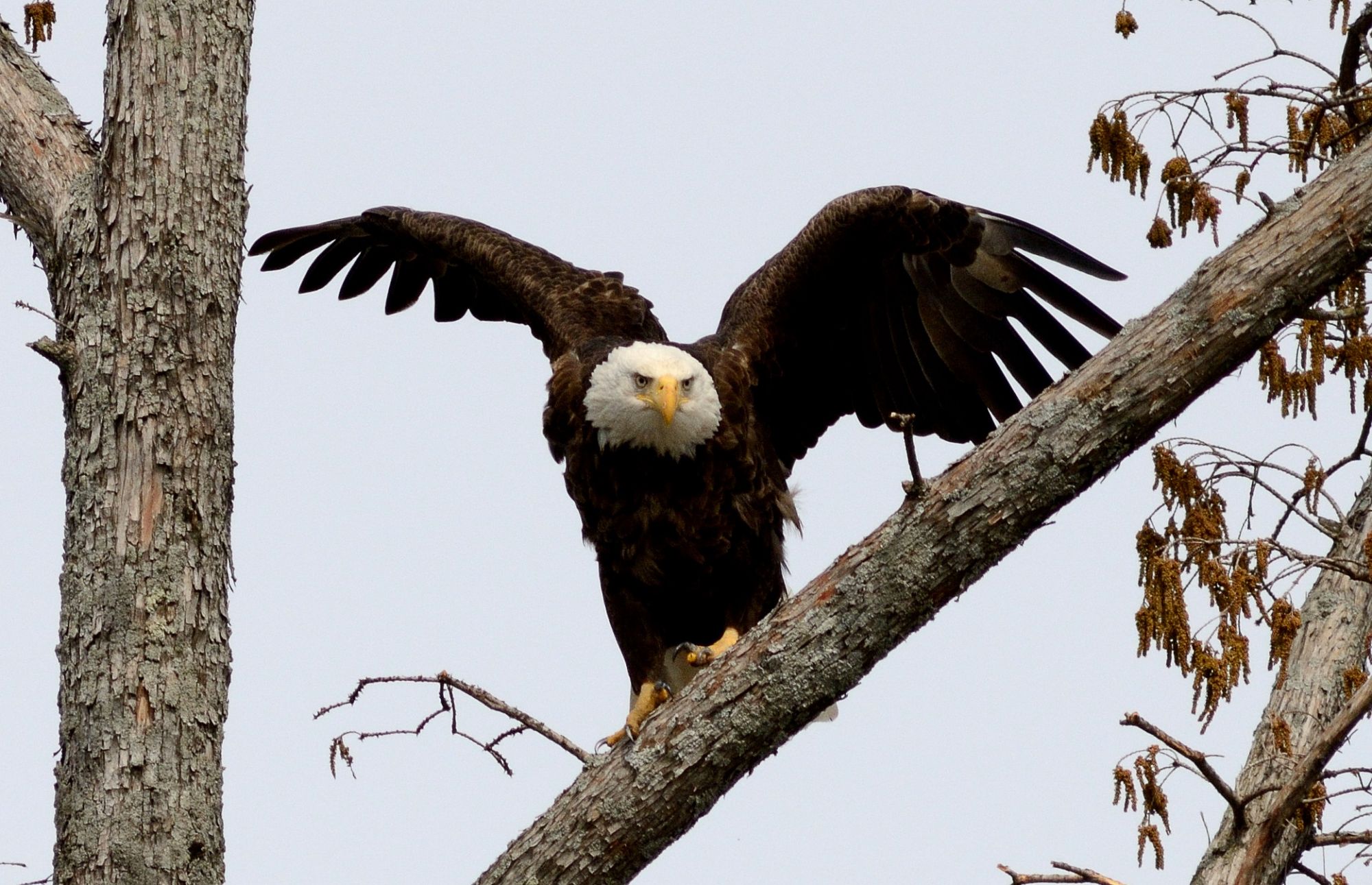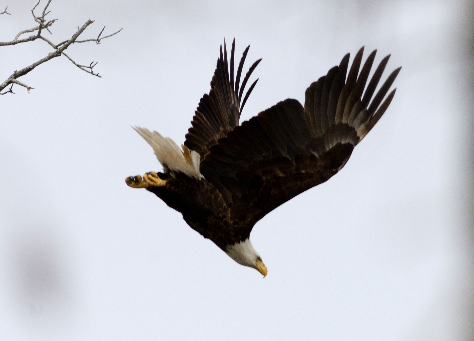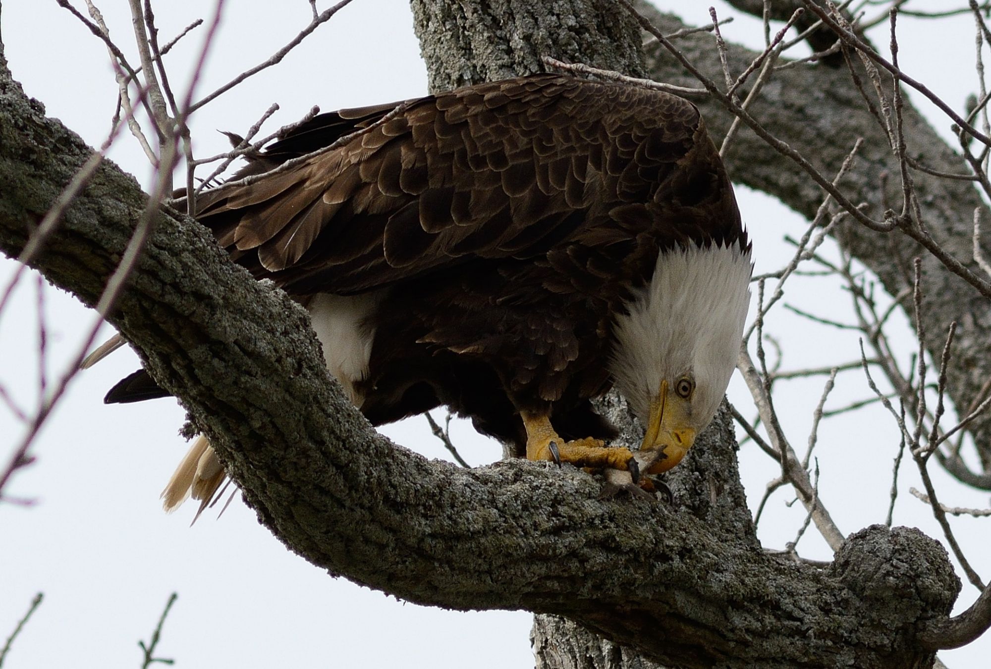 ผมจัดการตั้งขากล้องติดตั้งกล้องหาทำเลตั้งขาเพื่อให้ได้มุมที่กิ่งไม้ไม่บังและใกล้ที่สุดก็คือตั้งขากล้องใกล้น้ำที่สุดแล้วรอ รอ และรออยู่ประมาณชั่วโมงอินทรีที่กกไข่อยู่ในรังก็ไม่ขยับสักทีจนกระทั่งน้าเอเรียลผู้ติดตามล่าถ่ายอินทรีที่ทะเลสาบนี้แทบทุกวันผู้ที่มีดวงเจออินทรีมากกว่าผมเยอะขับรถคลานมาจอดเงียบๆเดินลงมาคุยกับผมไม่นานก็ชี้บอกว่าโน้นไงอีกตัวดูท่ากำลังจะบินกลับรังแล้วน้ารีบไปประจำการที่กล้องด่วน! ผมก็รีบเข้าไปส่องกล้องเตรียมเล็งพออินทรีอีกตัวบินลงไปในรังก็เริ่มกดชัตเตอร์ได้ภาพนี้มา