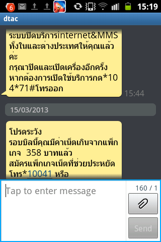 dtac บริการแย่มาก ปิด internet ด้วย *104*72# แล้วยังดูดเงินจนหมด เป็นสองรอบแล้ว ไม่กล้าเติมเงินมาก
