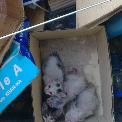 เนื่องจากเจ้าของกระทู้ เดินไปตลาดเมื่อเช้า ก็ได้ยินแม่ค้าโวยวายกันว่า ใครเอาลูกแมวมาปล่อยเนี่ย ดูดิหมากัดตายไปตัวนึงแล้ว T_T รีบๆ เอาไปปล่อยวัดเลย เราเลยเดินไปดูและจับ เด็กๆ ใส่ลังกลับห้อง แต่เราอยู่ค