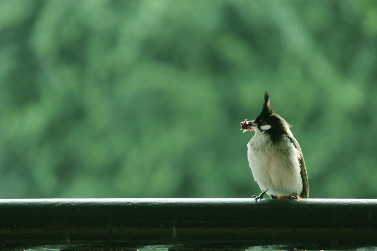 ที่บ้านมีรังนกในต้นโมกข์ ตรงระเบียงหน้าบ้าน ที่จริง นกกรงหัวจุกมาสร้างรังไว้ ฟักไข่โตไปหลายรุ่นแล้ว ตอนนี้มีลูกนกประมาณ 1 สัปดาห์ อยู่ 2 ตัว เมื่อวานตอนบ่ายโมง ขณะเปิดประตูเข้าบ้าน เห็นแมวตัวใหญ่ข้าง
