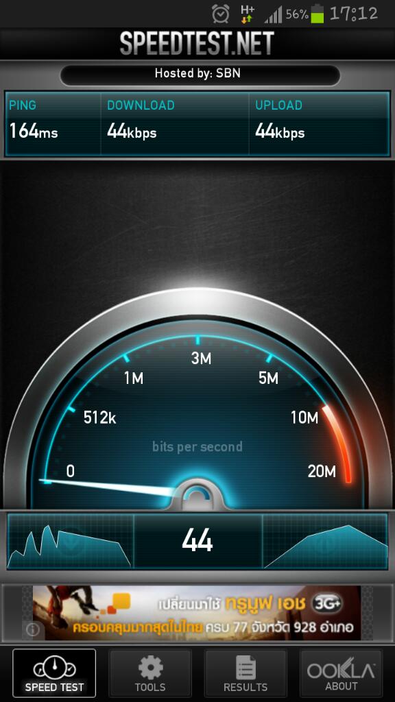โอ้โห้ สุดยอดไปเลยครับ กับความเร็วของคุณ ถือว่าเป็น3G แท้ของเมืองไทยเลย ขยายเร็วน่ะครับ เพราะผมเชื่อว่า เครือข่ายคุณเป็นเครือข่ายที่ดีสุด ตามที่ ceo ได้คุยในรายการ แบไต๋ ตอนจะเข้าประมูล3G https://www.