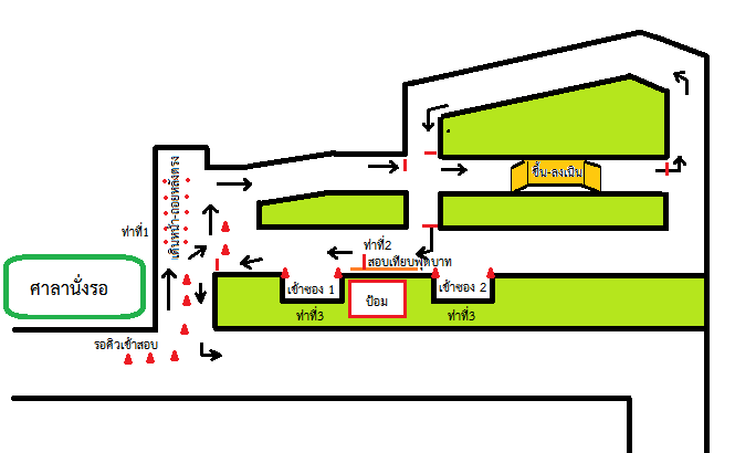 เคยไปสอบเมื่อนานมาแล้ว ไม่รู้ผังเปลี่ยนใหม่หรือยัง อาจจะผิดก็ได้นะเพราะหลงๆลืมๆ