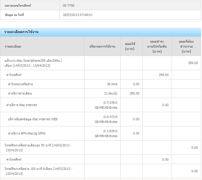 1.โทรฟรีทุกเครือข่ายเดือนละ 50 นาที (14/03/2013 - 13/04/2013)