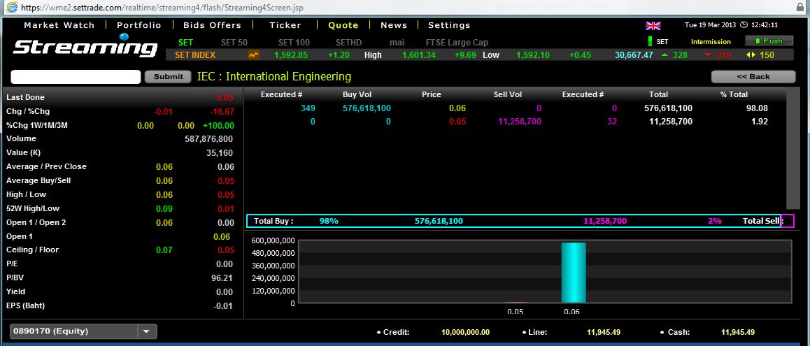 ตัวอย่าง IEC วันนี้ ซื้อ 500 กว่าล้าน ที่ 0.06