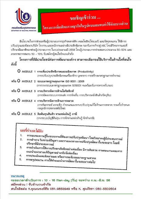 ขอเชิญเข้าร่วมโครงการเพิ่มศักยภาพธุรกิจ