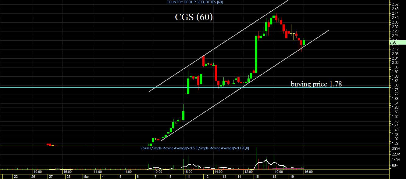 หรือ จะกำหนดเป็นราคาแนวรับก็ได้ เช่น ถ้าราคาตกลงต่ำกว่า 2.10 เมื่อไหร่จะขายทันทีเพื่อ lock กำไร