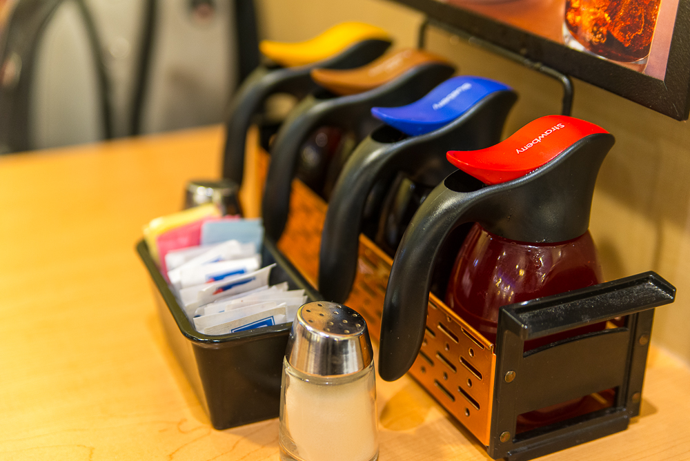 มาถึงก็เที่ยงแล้ว หิวมาก เลยหาร้านใกล้ ๆ เจอร้าน iHOP ที่มีชื่อเสียงด้านแพนเค้ก เลยถ่ายขวดน้ำเชื่อมันนี่ล่ะ!