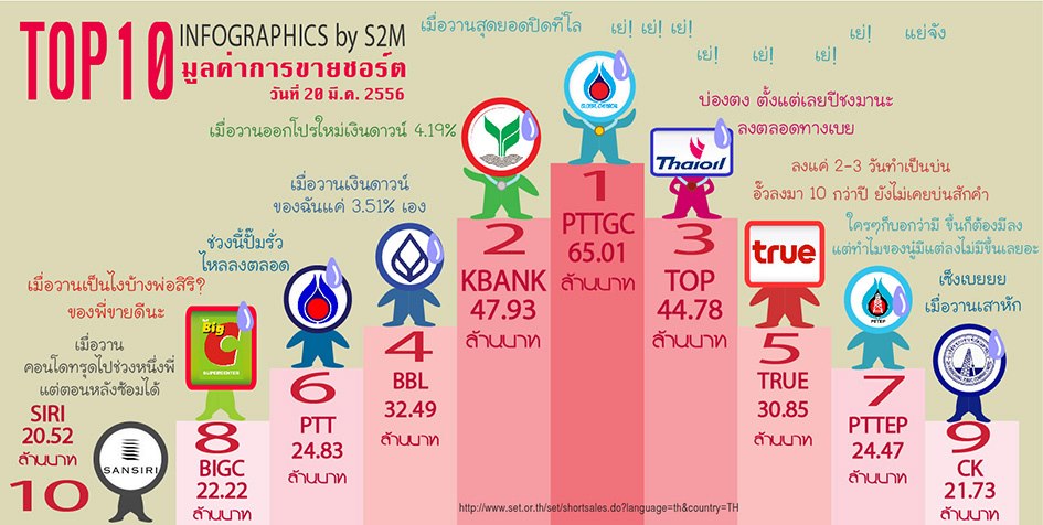 Top 10 มูลค่าการขายชอร์ต (Short Sell) วันที่ 20/3/2556