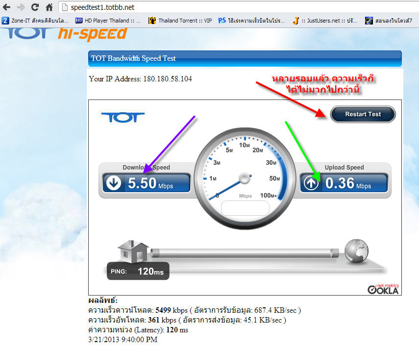 .....เจ้าหน้าที่ หรือผู้ที่เกี่ยวข้องของ TOT ช่วยดู Speed Test เน็ตของท่านที่ให้บริการด้วยครับ