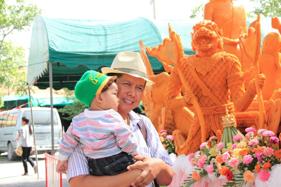 อากาศร้อนมากๆเลยครับ แต่ไม่เป็นไรหรอกครับไม่เหนื่อย เพราะผมมีคุณตาเป็นคนอุ้ม 555